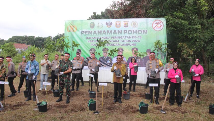 Pas-s.com- Bandar Lampung – Polresta Bandar Lampung bersama Polsek jajaran, melakukan penanaman pohon secara serentak, Kamis (27/6/2024).