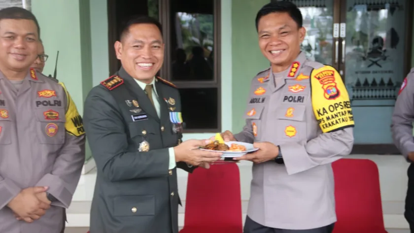 Dalam kunjungannya, Kapolresta Bandar Lampung, Kombes Pol Abdul Waras, S.I.K., didampingi Waka Polresta Bandar Lampung, AKBP Erwin Irawan, S.I.K., beserta pejabat utama dan beberapa personel datang ke Markas TNI dengan membawa kue tart dan tumpeng sebagai kejutan.
