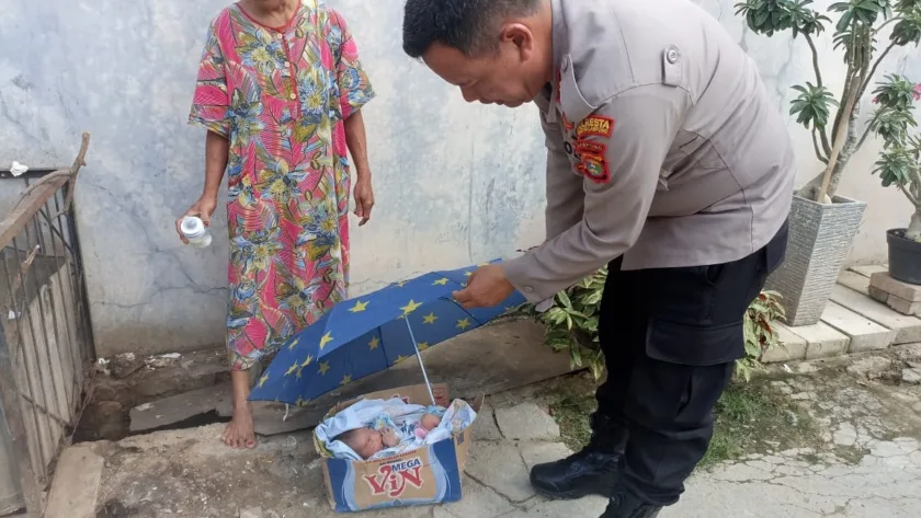Kapolsek menambahkan bahwa saksi Ernawati, menemukan bayi tersebut didalam sebuah kardus diselimuti kain dengan ditutupi payung.