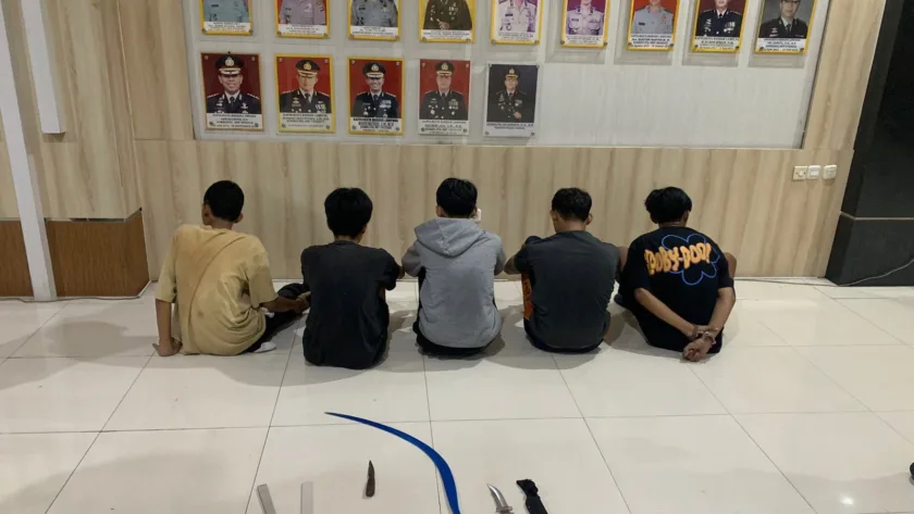 “Benar semalam, Tim patroli gabungan berhasil menggagalkan aksi tawuran dan mengamnkan 5 remaja berikut sejumlah sajam,” Kata Kompol Sugeng Sumanto, Sabtu (28/12/2024).