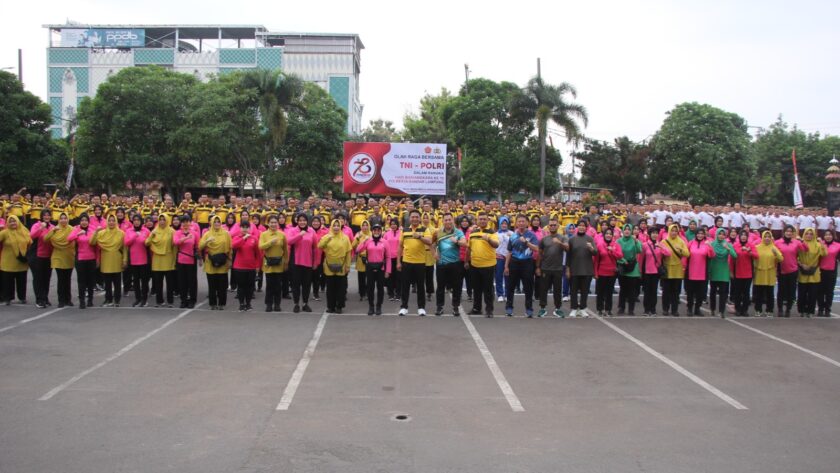 Pas-s.com- Bandar Lampung – Polresta Bandar Lampung menggelar olah raga bersama Tentara Nasional Indonesia (TNI) dari berbagi kesatuan, bertempat di lapangan Mapolres setempat, Sabtu (22/6/2024).