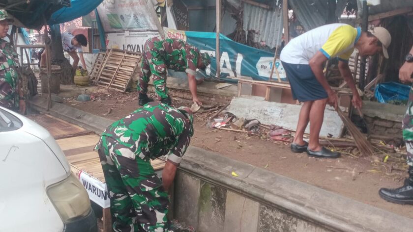 PAS-S.COM- BANDAR LAMPUNG – Guna menciptakan lingkungan yang bersih dan sehat, Koramil 410-05/Tanjung Karang Pusat (TKP) menggelar kegiatan gotong royong bertajuk ‘Kamis Bersih’ di sekitar kawasan Pasar Tamin, Kelurahan Kelapa Tiga, Kamis (18/9) pagi. Kegiatan ini merupakan bagian dari program serentak yang digalakkan Kodim 0410/KBL di seluruh jajarannya.