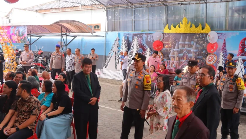 Pas-s.com- Bandar Lampung – Ratusan personel gabungan TNI Polri menjaga prosesi ibadah Natal untuk umat Kristiani di Bandar Lampung. Kapolresta Bandar Lampung, Kombes Pol Abdul Waras, S.I.K., turut mengecek pengamanan di sejumlah gereja di wilayah Kota Bandar Lampung, Rabu (25/12/2024).