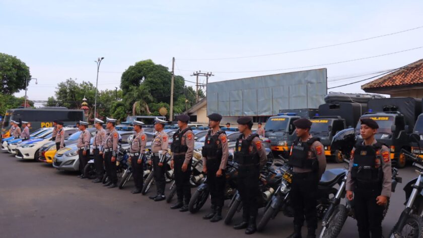Apel kesiapan pengamanan malam takbir hari raya Idul Adha dipimpin langsung oleh Waka Polresta Bandar Lampung, AKBP Erwin Irawan di Lapangan Mapolres setempat, Kamis (5/6/2025) sore.
