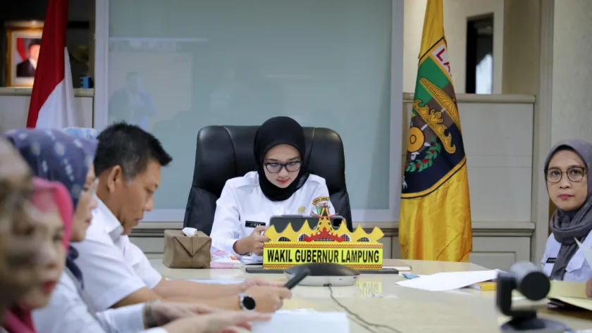 Pas-s.com – BANDAR LAMPUNG – Wakil Gubernur Lampung Jihan Nurlela mengikuti Peluncuran Indikator Indeks Pencegahan Korupsi Daerah (IPKD) Monitoring Center for Prevention (MCP) Tahun 2025 melalui Virtual Zoom di Ruang Kerja Wakil Gubernur, Bandarlampung, Rabu (5/3/2025).
