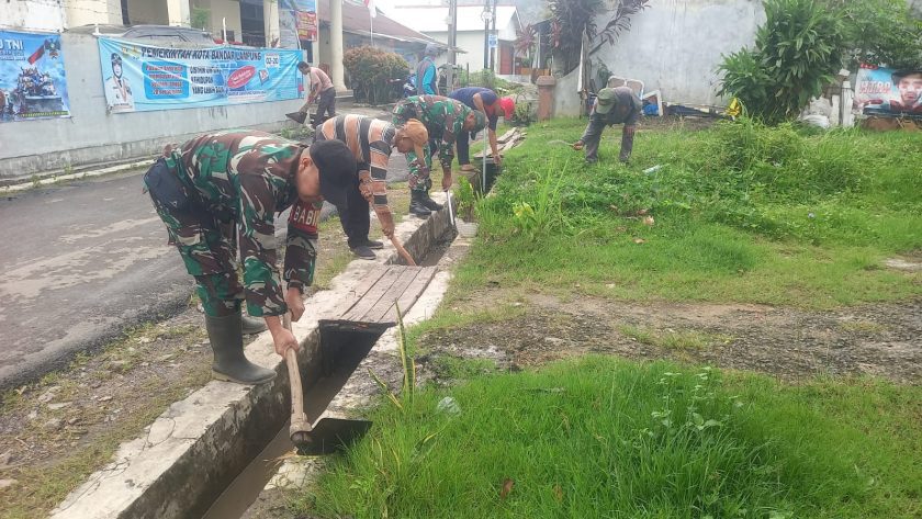 PAS-S.COM- BANDAR LAMPUNG, Jumat 16 JANUARI 2026 – Mengantisipasi datangnya musim penghujan yang diperkirakan akan membawa hujan deras dan intensif di wilayah Kota Bandar Lampung, Babinsa Kelurahan Kota Karang Raya Koptu Eka Firriyadi bersama rombongan anggota Koramil 410-03/Teluk Betung Utara (TBU) turun langsung ke lapangan untuk bekerja sama dengan seluruh elemen masyarakat dalam melaksanakan kegiatan pembersihan selokan dan saluran drainase yang meliputi area Jalan Teluk Ratai RT.03 LK 2, Kelurahan Kota Karang Raya, Kecamatan Tanjungkarang Barat (TBT). Kegiatan yang berlangsung (15 /1/2026) yang diberi semboyan kebanggan RADIN INTEN ini berlangsung mulai pukul 08.00 WIB hingga selesai, dengan partisipasi yang luar biasa dari berbagai lapisan masyarakat.