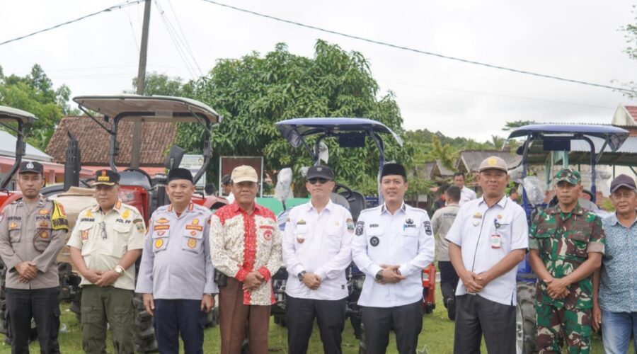 DUKUNG SWASEMBADA PANGAN, BUPATI DEDI IRAWAN SERAHKAN BANTUAN ALSINTAN DAN BENIH PADI