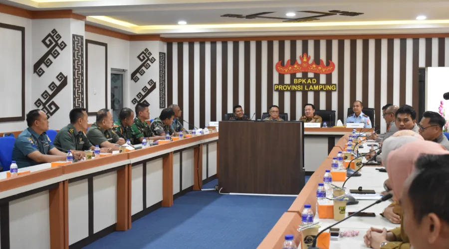 Pas-s.com- Lampung – Bertempat di ruang rapat Badan Pengelolaan Keuangan dan Aset Daerah (BPKAD) Provinsi Lampung Lantai Teluk Betung Bandar Lampung, Komandan Korem 043/Gatam Brigjen …