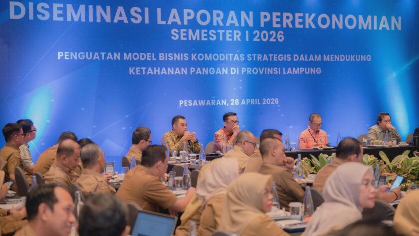 Laporan Perekonomian Provinsi Lampung Semester I 2026 pada Selasa, 28 April 2026, sebagai bagian dari upaya memperkuat komunikasi kebijakan serta meningkatkan pemahaman pemangku kepentingan terhadap kondisi dan prospek ekonomi daerah. Kegiatan ini