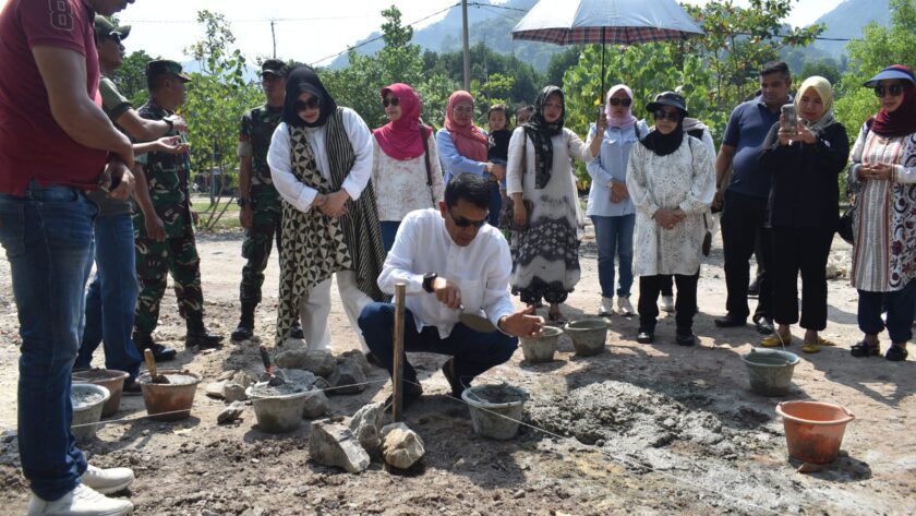 Pas-s.com- Lampung – Komandan Korem 043/Gatam Brigjen TNI Rikas Hidayatullah, S.E., M.M., didampingi Ketua Persit Kartika Chandra Kirana Koorcab Rem 043 PD II/Swj Ny. Hanny Rikas Hidayatullah, meletakan batu pertama tanda dimulainya Pembenahan dan Renovasi Camp Latihan Pantai Pasir Putih, yang berada di Desa Tarahan Kecamatan Katibung Kabupaten Lampung Selatan. Minggu (14/07/2024).