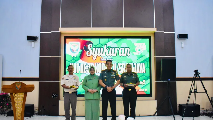 Pas-s.com- Lampung – Dalam rangka memperingati Hari Ulang Tahun (HUT) Kodam II/Sriwijaya yang ke-79 Tahun 2025, Danrem 043/Gatam Brigjen TNI Rikas Hidayatullah, S.E., M.M., bersama dengan anggota Makorem melaksanakan kegiatan syukuran yang berlangsung di Ruang A. Yani Makorem 043/Gatam Jl.Teuku Umar Penengahan Bandar Lampung. Selasa (07/01/2025)