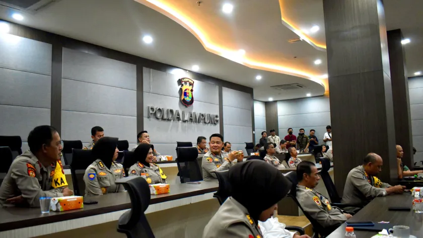 Pas-s.com- Lampung – Komandan Korem 043/Gatam Brigjen TNI Rikas Hidayatullah, S.E., M.M., bersama Kapolda Lampung Irjen Pol Helmy Santika, S.H., S.I.K., M.Si., mengikuti rapat koordinasi perkembangan situasi dan kesiapan satuan wilayah dalam pengamanan, pemungutan dan penghitungan suara Pilkada Serentak Tahun 2024 secara virtual, Senin (25/11/2024) yang dipimpin Kapolri Jenderal Pol Drs. Listyo Sigit Prabowo, M.Si., dan Kasum TNI Letjen TNI Richard Taruli H. Tampubolon, S.H., M.M., bertempat di Gedung A lantai 4 Mapolda Lampung, Jl. Terusan Ryacudu, Way Hui, Kecamatan Jati Agung Kabupaten Lampung Selatan.