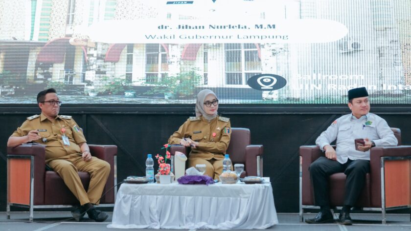 PAS-S.COM- BANDARLAMPUNG — Wakil Gubernur Lampung Jihan Nurlela memberi kuliah umum (studium generale) yang digelar Fakultas Dakwah dan Ilmu Komunikasi Universitas Islam Negeri (UIN) Raden Intan Lampung, di Ballroom UIN, Bandarlampung, Senin (20/10/2025).
