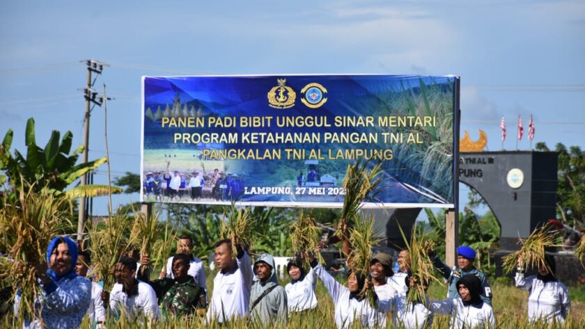 Komandan Lanal Lampung Letkol Laut (P) Krido Satriyo U, bersama Ketua Cabang 3 Korcab III DJA I Ny. Nuke Krido Satriyo dan Prajurit Lanal Lampung melaksanakan Panen Raya padi. Ini adalah upaya TNI AL dalam mendukung Asta Cita Presiden RI di bidang ketahanan pangan.