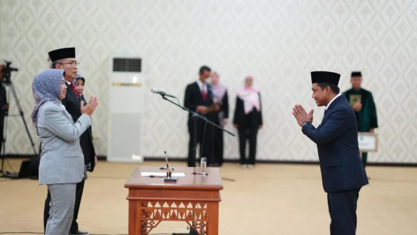 Pas-s.com- Lampung – Rektor Universitas Lampung (Unila) Prof. Dr. Ir. Lusmeilia Afriani, D.E.A., IPM., ASEAN Eng., melantik pejabat tahap tiga di lingkungan Unila pada Rabu, 12 Februari 2025, di ruang sidang lantai empat rektorat.