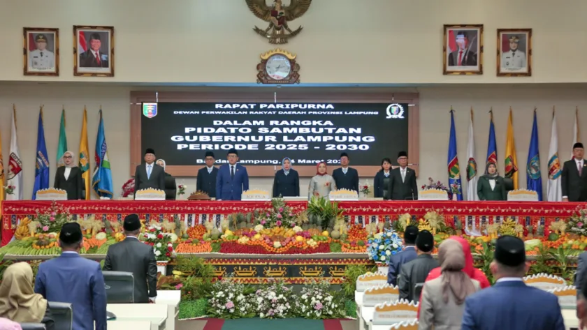 Dalam rapat paripurna tersebut, Gubernur dan Wakil Gubernur Lampung periode 2025-2030 juga menyatakan tekadnya untuk konsisten menjalankan amanah dalam memimpin Provinsi Lampung.