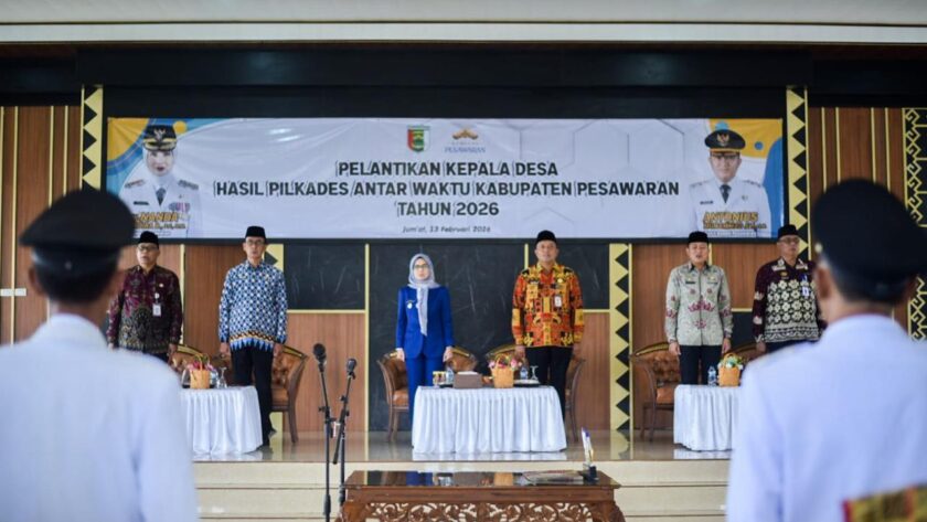 PAS-S.COM- Pesawaran – Bupati Pesawaran Hj. Nanda Indira B., S.E., M.M. secara resmi melantik sembilan Kepala Desa hasil Pemilihan Kepala Desa (Pilkades) Antar Waktu di Lamban Agung, Komplek Rumah Dinas Bupati Pesawaran, Jumat (13/2/2026).