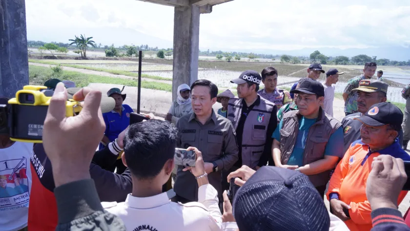 Pas-s.com- AMBARAWA – Penjabat (Pj) Bupati Pringsewu Marindo Kurniawan meninjau sejumlah lokasi terdampak banjir di Kecamatan Ambarawa, Jumat (24/01/2025). Beberapa lokasi bencana berada di Pekon Ambarawa Timur dan Pekon Ambarawa, termasuk meninjau Bendung Way Napal yang meluap hingga merendam ratusan hektar lahan pertanian.