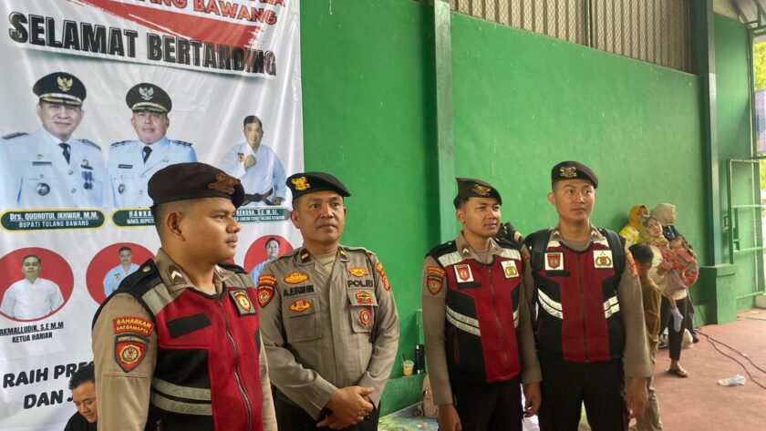 PAS-S.COM- Tulang Bawang — Minggu (26/10/2025) Personel Satuan Samapta Polres Tulang Bawang melaksanakan pengamanan kegiatan Turnamen dan Festival Karate Piala Bupati Tulang Bawang yang berlangsung di Lapangan Tenis Indoor Menggala, Kecamatan Menggala, Kabupaten Tulang Bawang.