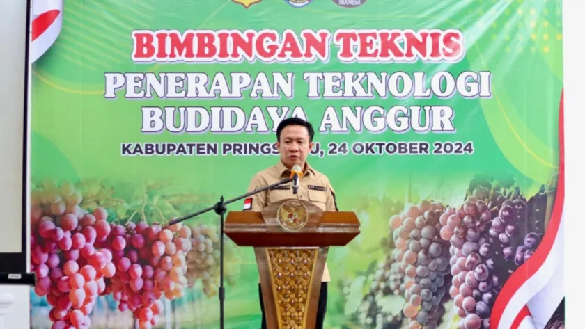 Pas-s.com- Pringsewu, Kamis, 24/10/24 — Penjabat Bupati Pringsewu, DR. Marindo Kurniawan, ST., MM., menghadiri Kegiatan Bimbingan Teknis (Bimtek) Budidaya Anggur yang diadakan bersama Direktur Buah dan Florikultura Kementerian Pertanian, Dr. Liferdi. Dalam acara ini, Marindo menyatakan komitmennya untuk menjadikan Kabupaten Pringsewu sebagai Kabupaten Anggur pertama di Indonesia.