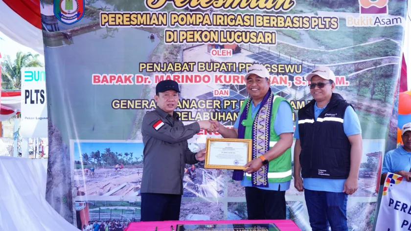 Turut hadir pada kesempatan itu, jajaran PT.Bukit Asam (PTBA) Tbk, Balai Besar Wilayah Sungai Mesuji-Sekampung (BBWSMS), Dinas Pengelolaan Sumber Daya Air Provinsi Lampung, serta jajaran pemerintah daerah, DPRD dan forkopimda Kabupaten Pringsewu. (Red).