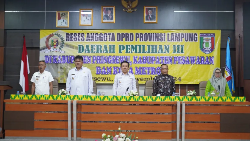 Pas-s.com- Pringsewu- Pj Bupati Pringsewu Marindo Kurniawan menerima kunjungan reses anggota DPRD Provinsi Lampung Daerah Pemilihan (Dapil) III (Kabupaten Pringsewu, Kabupaten Pesawaran dan Kota Metro) di Aula Utama Pemkab Pringsewu, Pada hari Rabu 13 November 2024.