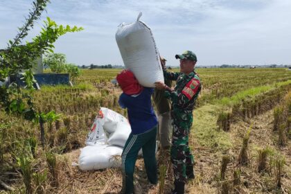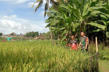 Dekat dengan Rakyat, Babinsa Sukarame Pantau Langsung Panen Raya Padi Warga