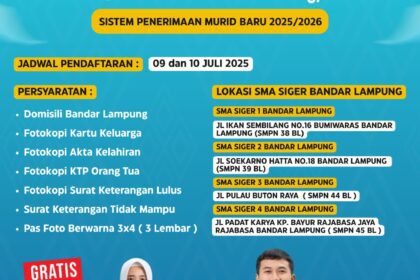 PAS-S.COM- Bandar Lampung — Pemerintah Kota Bandar Lampung membuka pendaftaran peserta didik baru tahun ajaran 2025/2026 untuk jenjang Sekolah Menengah Atas (SMA) yang dikelola oleh …