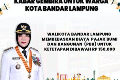 PAS-S.COM- Bandar Lampung – Pemerintah Kota Bandar Lampung memberikan keringanan pembayaran Pajak Bumi dan Bangunan (PBB) tahun 2025. Melalui kebijakan Wali Kota Eva Dwiana, tagihan …