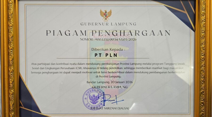PLN Terima Penghargaan CSR dari Gubernur Lampung atas Kontribusi di Bidang Pendidikan