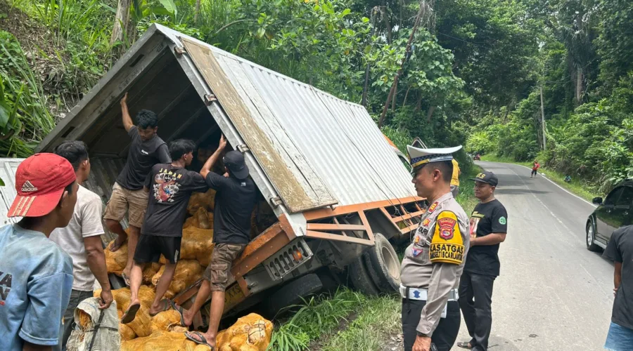 Laka Beruntun di Jalur Wisata Pesawaran Gegara Truk Box Gagal Menanjak