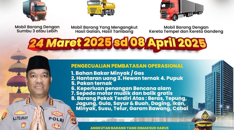 Pas-s.com- Bandar Lampung – Kepolisian bersama instansi terkait akan memberlakukan pembatasan operasional angkutan barang selama periode libur Lebaran Idul Fitri 1446 H, mulai 24 Maret …