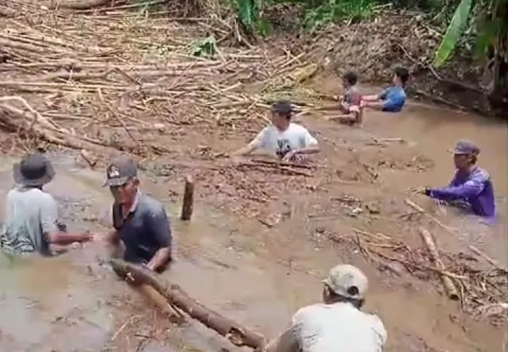 Warga Dusun Sebalang Gotong Royong Bersihkan Sampah Pasca Banjir